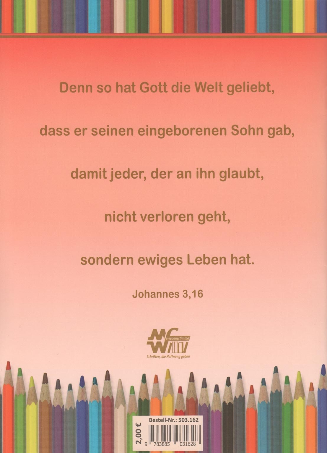 Mit 23 verschiedenen Bildmotiven und Bibelversen zum Thema Jesu Geburt zum Ausmalen. Auf jeder Seite befindet sich immer ein Vers und ein Bild. Auf der letzten Seite ist ein passendes Lied.